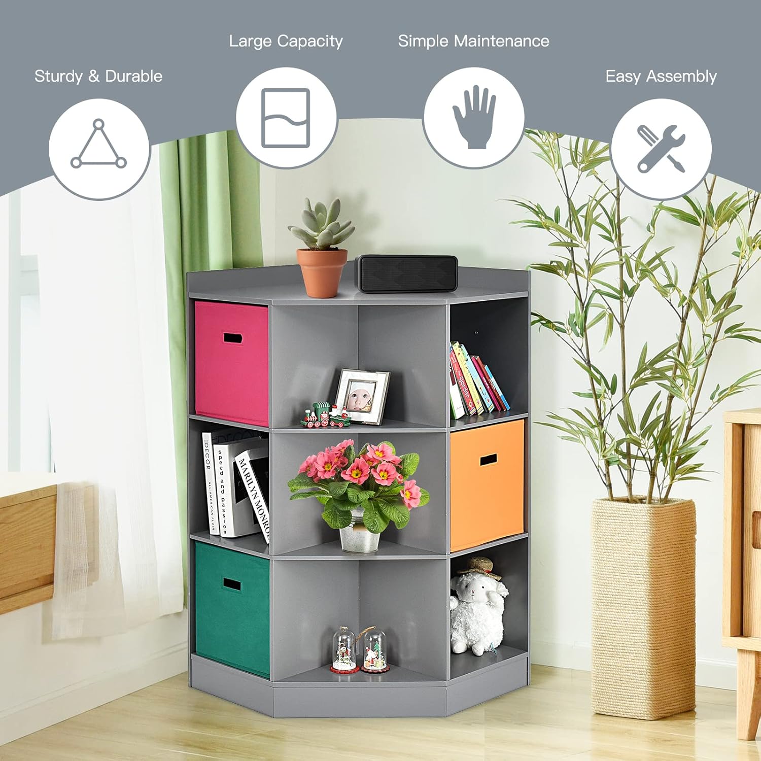 | Included Components | 1 x Kids Corner Cabinet, 1 x User Manual, 3 x Storage Bins |